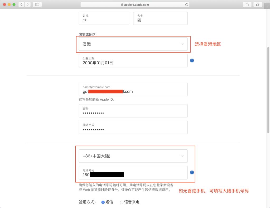 - 手机号码:如果没有香港号码,可以使用大陆手机号码