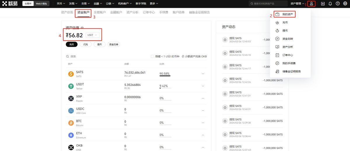 1、回到首页点击右上角的小人头像,选择【我的资产】,我们购买好的USDT会在资金账户里面。