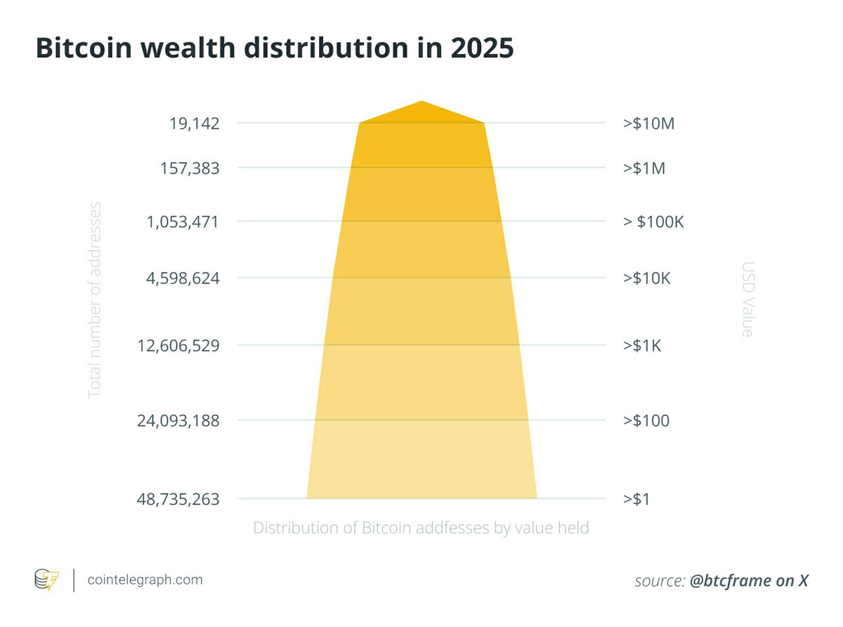 这种区别很重要,因为原始“富豪榜”地址数量可能会夸大集中度。像交易所、ETF 托管人和支付处理器这样的大型服务机构运营着成千上万个钱包,而标记的集群有助于将这些机构与终端投资者区分开来。学术界和行业研究长期以来都警告不要仅凭地址数据就得出结论。