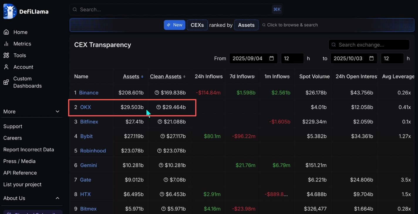 我们在Coingecko的交易所排名里面看到,OKX交易所是它是排名第六的。