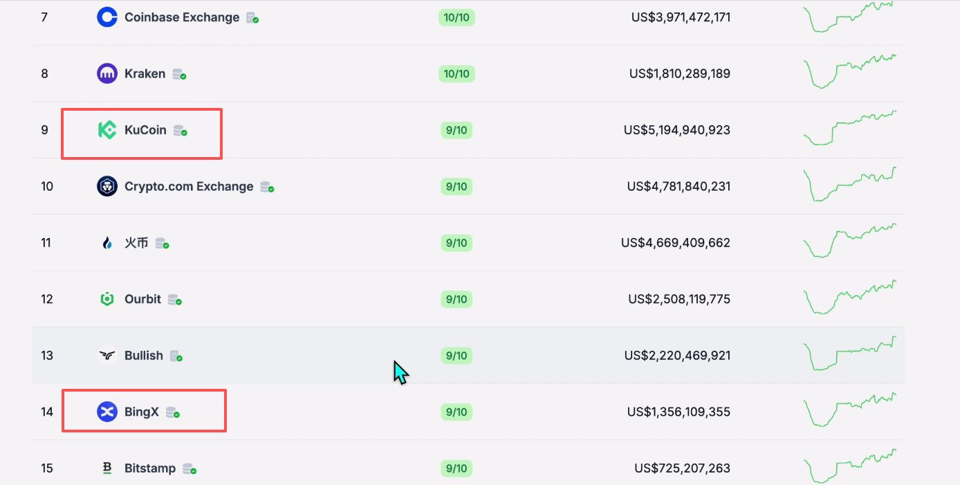 | 6 | KuCoin | ¥11,617,818,972 | ¥22,363,114,810 | 0.02% | 0.06% | 522 | Aug 2017 |