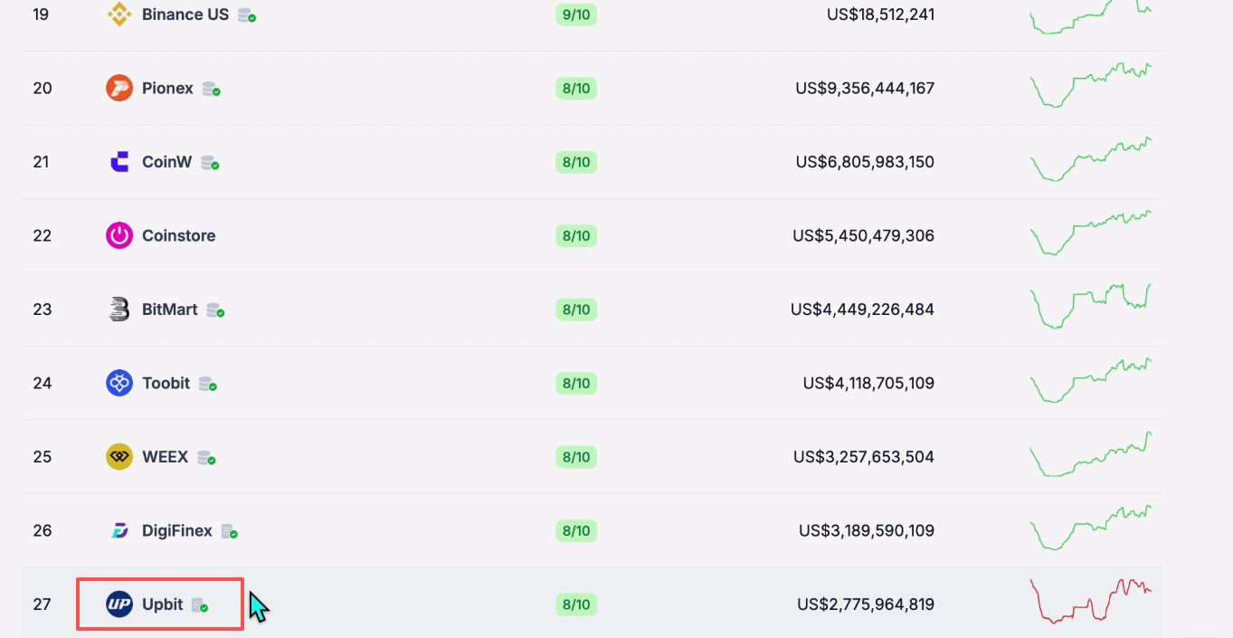 | 3 | Upbit | ¥6,479,376,550 | 532 | 1,724,028 | 666 | 302 | KRW |